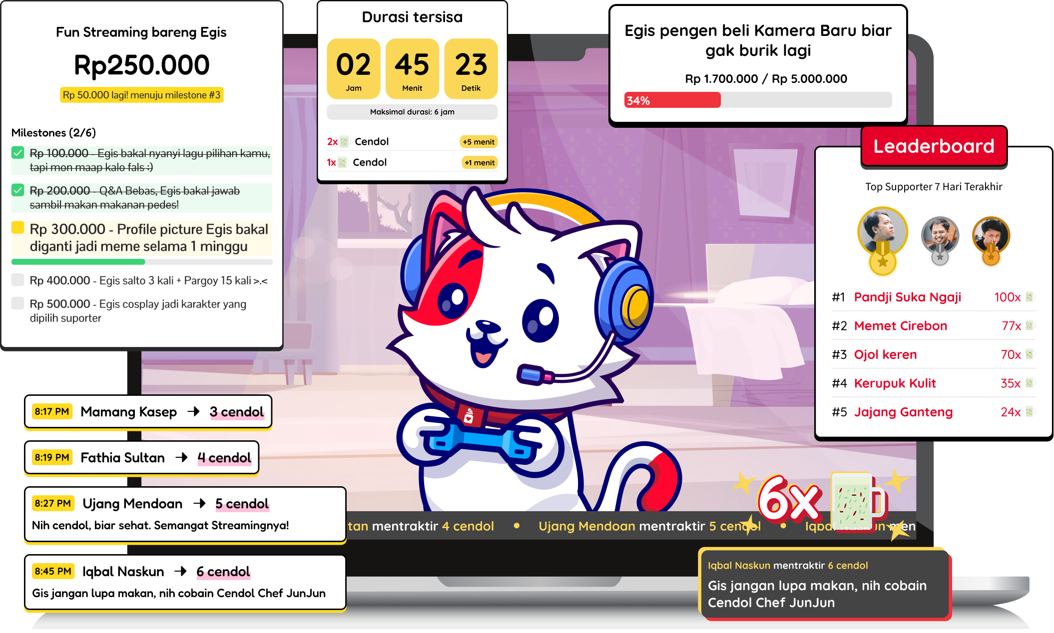 Trakteer itu all-in-one platform buat para kreator, Jadi bukan cuma streamer aja, tapi juga cosplayer, komikus, podcaster, dan lainnya, semua bisa cuan dari karya mereka. Selain itu, Trakteer punya tampilan yang lebih rapi, gampang dipahami, dan ada currency “Trakteeran” yang lucu. Fee-nya juga kompetitif banget (5%), dan proses pencairannya bisa instan lho.