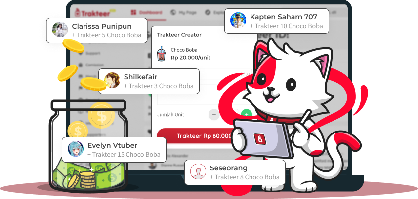 Di sini kamu bisa menerima dukungan dan apresiasi karya dengan mudah dan menyenangkan sepeti saat kamu ditraktir seorang teman.